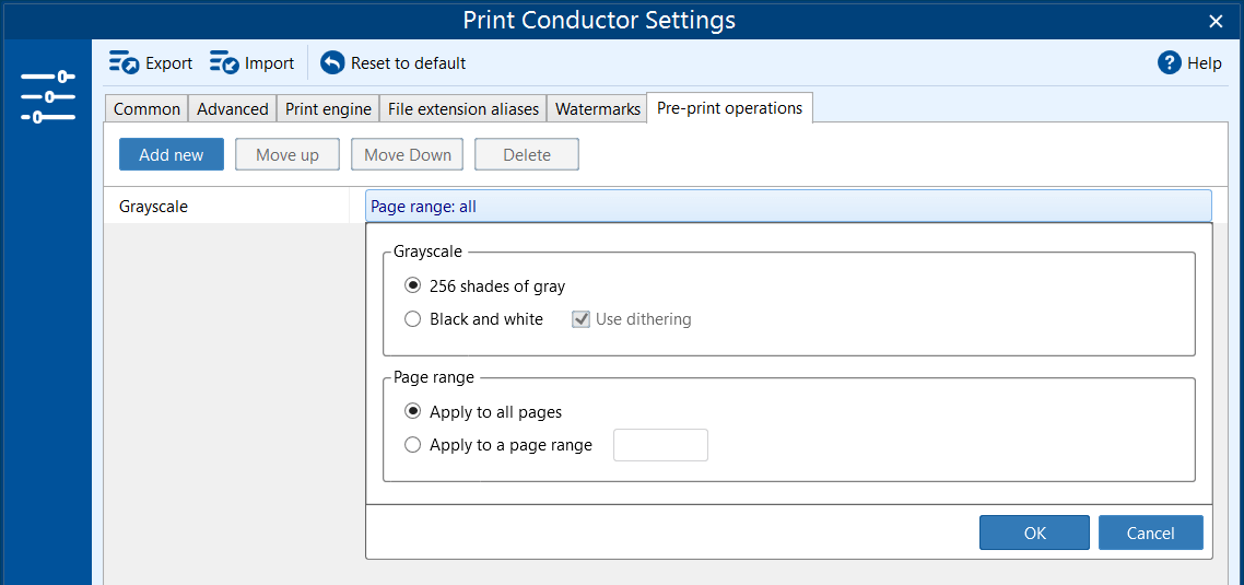- Apply to a page range – converts only the specified pages.