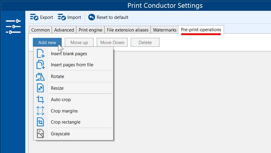 Print Conductor offers built-in operations that can be optionally utilized before the document printing process starts. These operations will apply to all items added to the List of Documents.